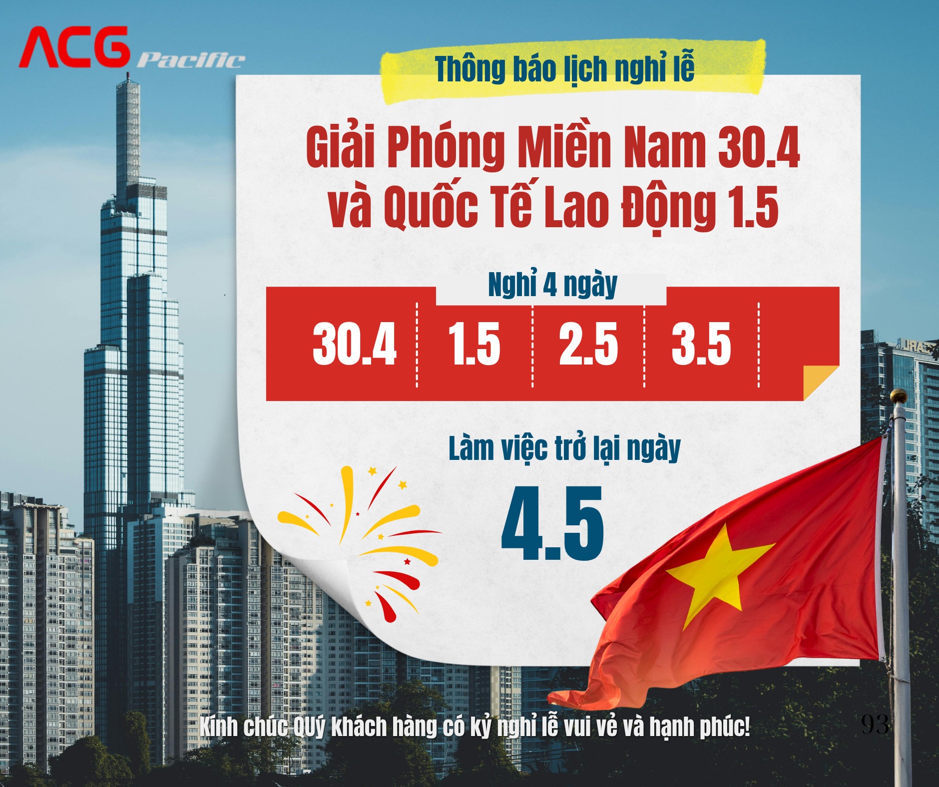 Lịch nghỉ lễ 30/4 - 1/5 của ACGPACIFIC